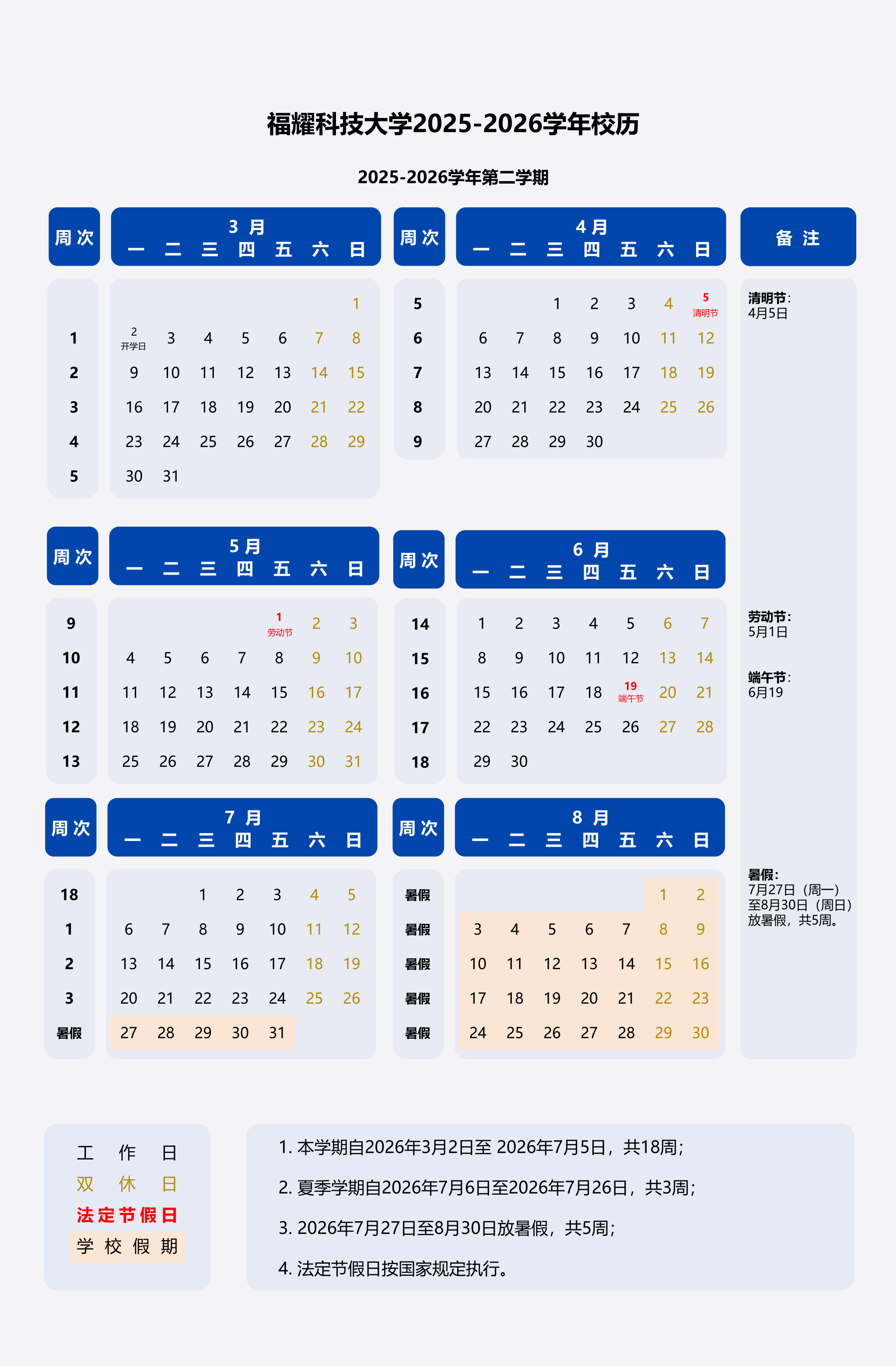2026年春季校历